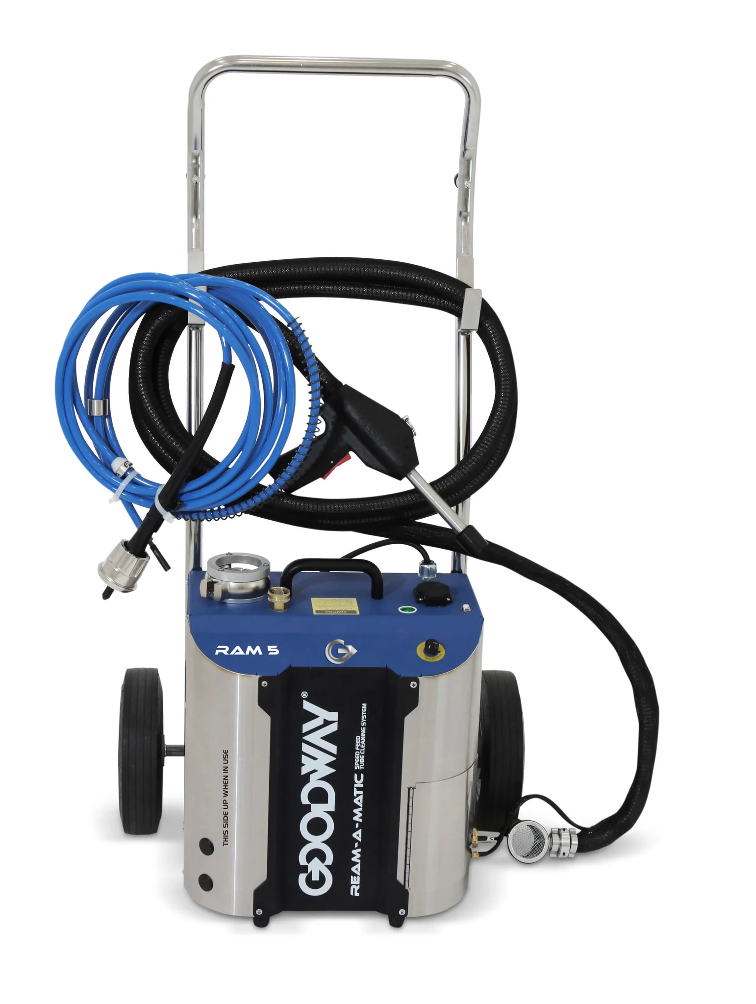 Les arbres flexibles bleus Goodway® RAM-5 sont disponibles avec des raccords de brosse filetés ou à connexion rapide. Goodway Benelux recommande toujours de choisir la version à connexion rapide, car le système de nettoyage de tubes RAM-5 dispose d’une double rotation pour un fonctionnement en marche avant et arrière.
