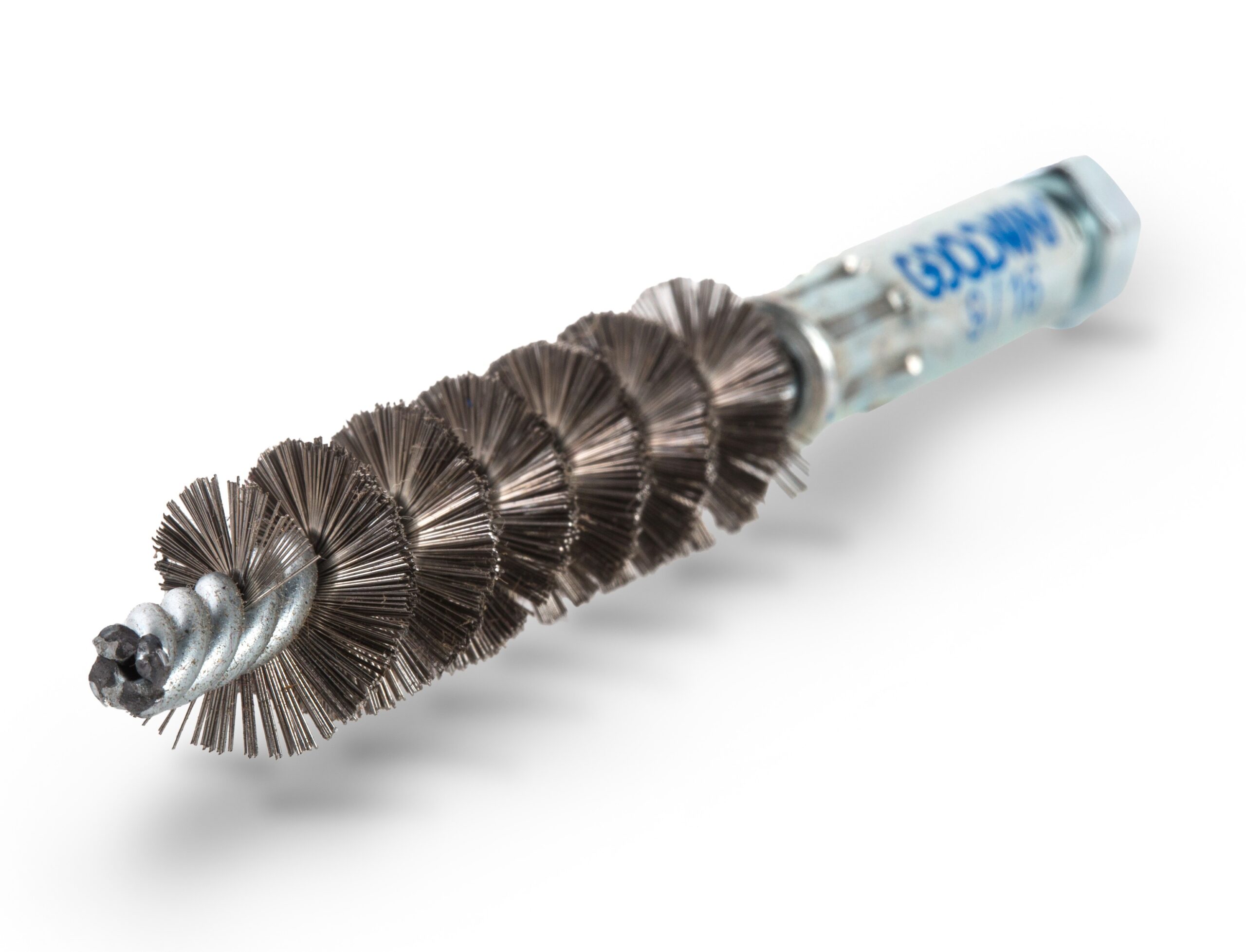 Fabriquées en acier inoxydable, ces brosses sont l’option la plus agressive de Goodway®, conçues pour éliminer les dépôts les plus tenaces des tubes d’échangeurs de chaleur. Elles sont le choix idéal lorsqu’aucune autre brosse de nettoyage de tubes Goodway® ne peut éliminer complètement les dépôts. L’acier inoxydable étant relativement dur, il existe un léger risque de rayer la surface du tube – veuillez consulter notre équipe pour obtenir des conseils avant utilisation.