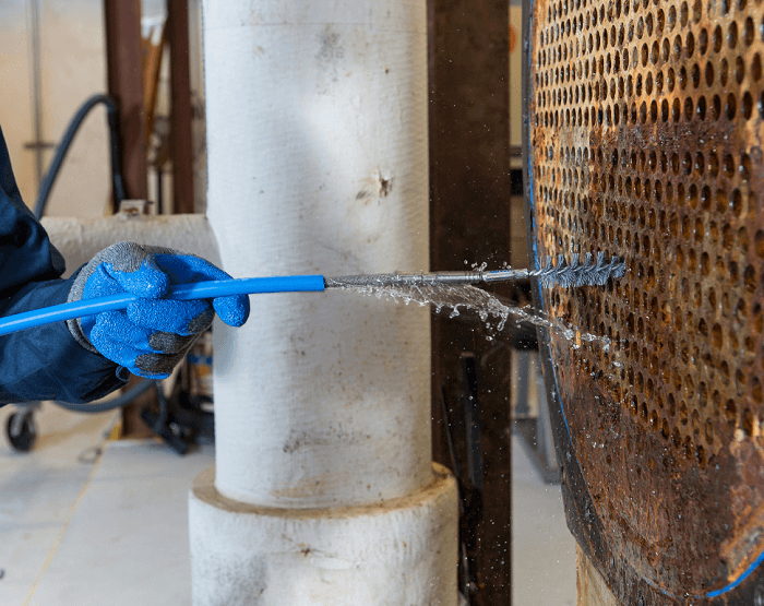 Nous effectuons régulièrement des services de nettoyage de tubes pour les refroidisseurs refroidis à l'eau avec des tubes améliorés. Les brosses ESGB fonctionnent très bien et sont capables de nettoyer les tubes mieux que toutes les autres brosses.
