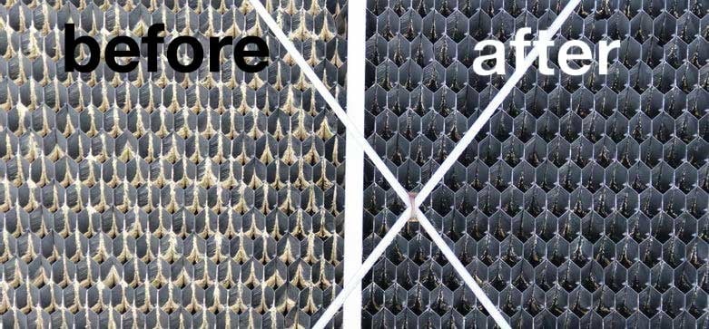 Il arrive que des dépôts de tartre se forment sur les serpentins des condenseurs refroidis par air, notamment dans les systèmes adiabatiques ou lorsque les utilisateurs pulvérisent de l’eau sur les serpentins pour améliorer le refroidissement – un phénomène fréquent en été. Pour éliminer cette couche de tartre, le TFC-JR peut être utilisé avec le gel ScaleBreak et le nettoyant pour condenseurs CC-400HF.