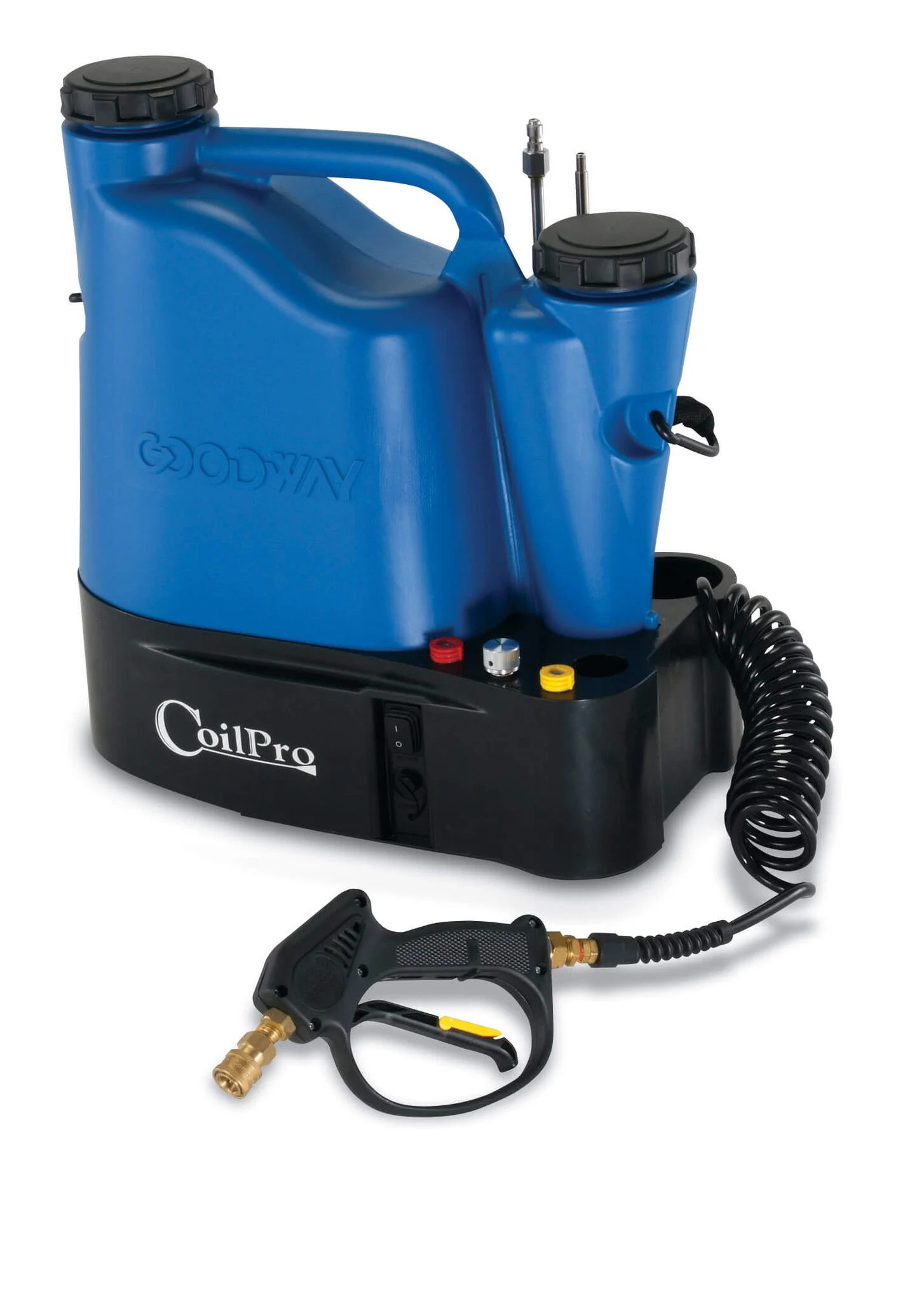Le Goodway® CC-JR est un système portable et compact conçu pour nettoyer les petits échangeurs de chaleur à air, comme les systèmes de climatisation. Il fonctionne sur batterie et dispose de deux réservoirs de liquide, permettant au système de fonctionner même en l'absence d'alimentation électrique ou d'eau externe.