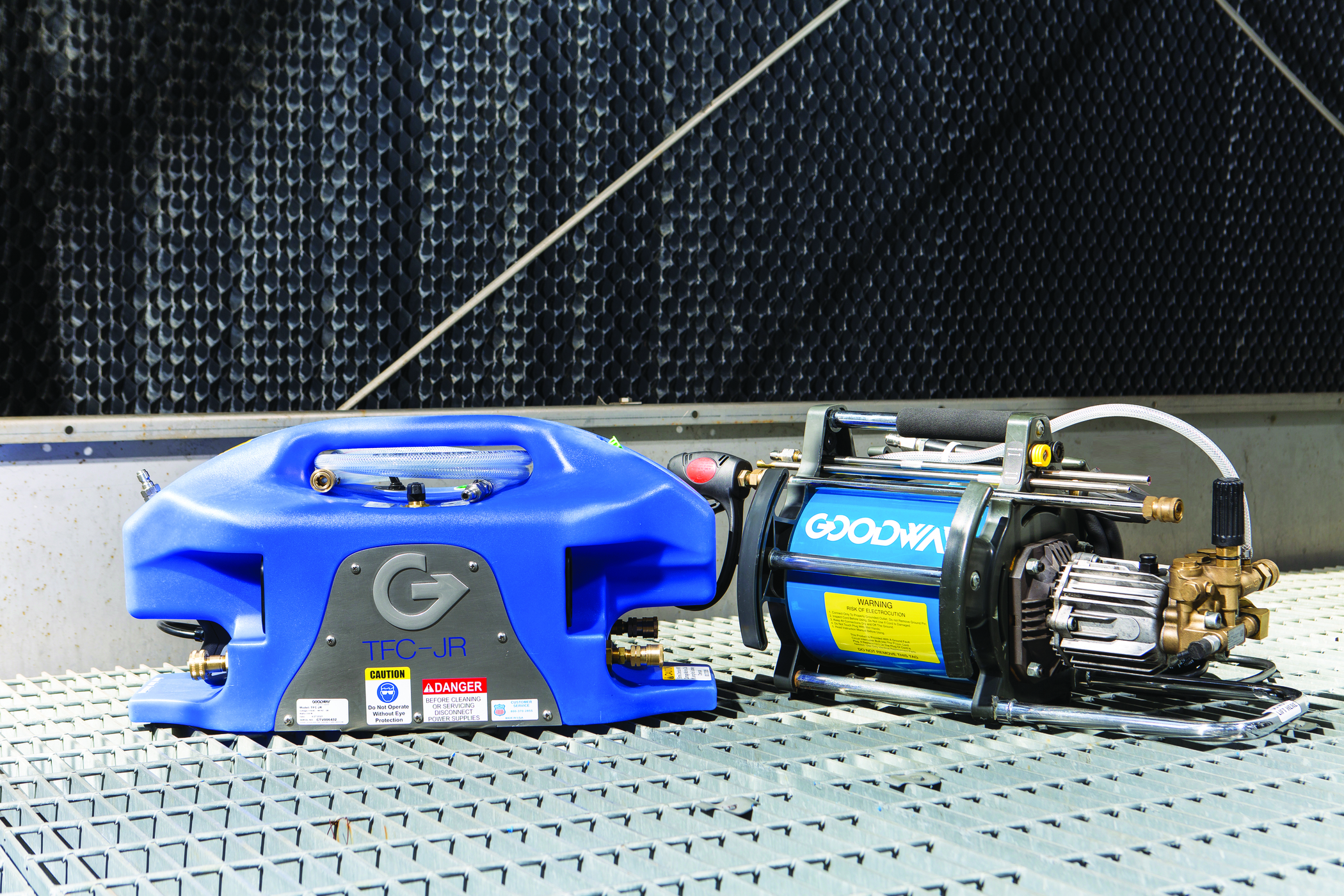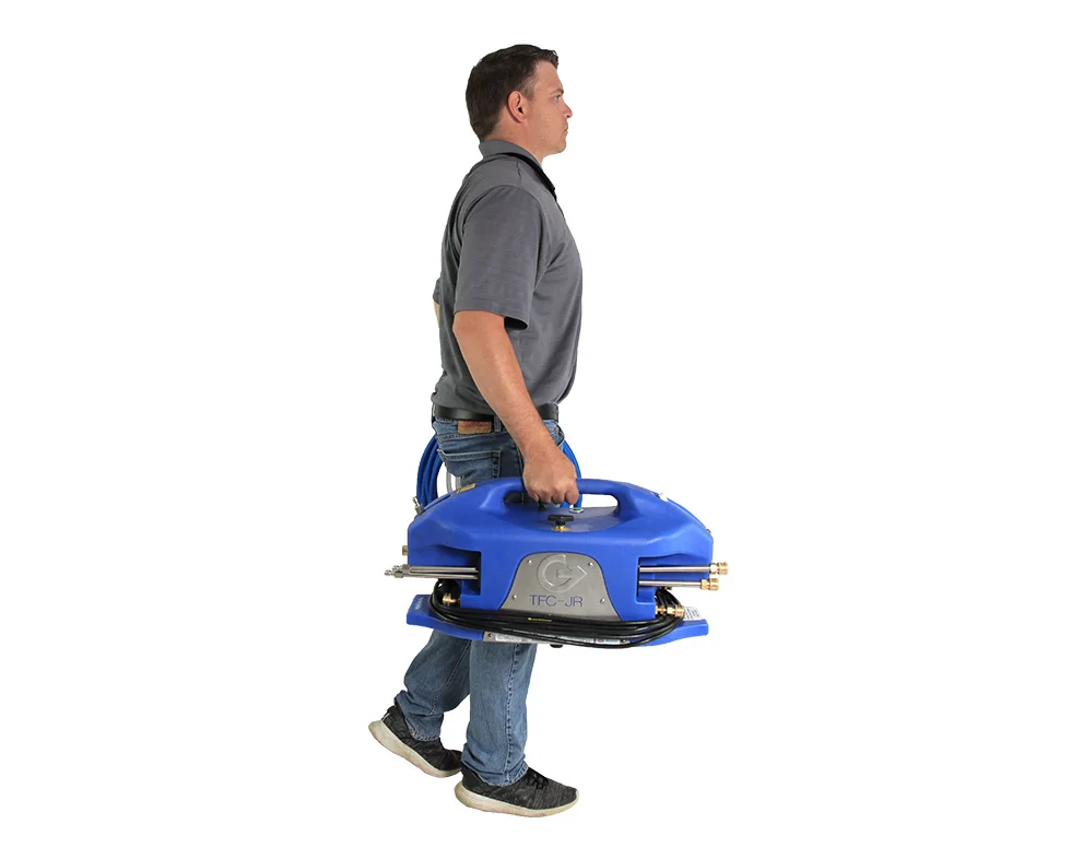 Le nettoyeur de tour de refroidissement Goodway® TFC-JR est un système compact et léger conçu pour nettoyer efficacement les composants des tours de refroidissement tels que les persiennes d'admission d'air et les éliminateurs de gouttelettes. Pour des performances de nettoyage optimales, utilisez-le en combinaison avec le gel ScaleBreak de Goodway®.