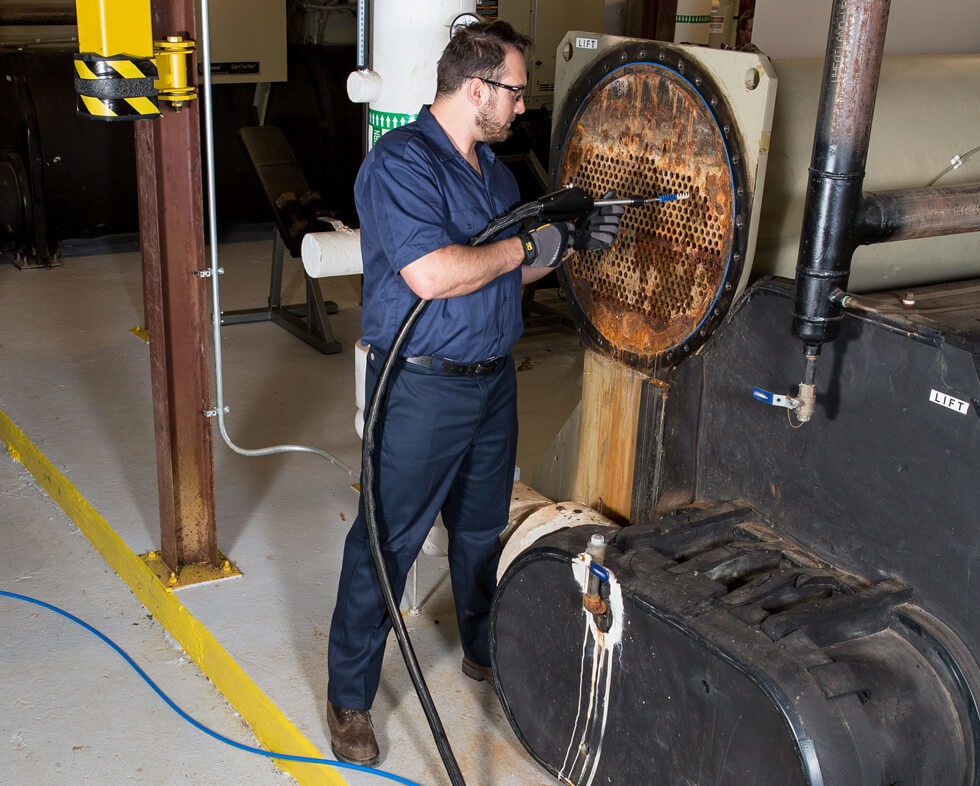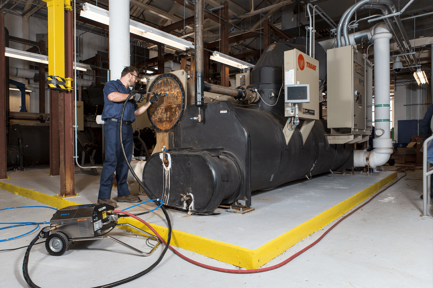 Le RAM-5 est largement utilisé pour la maintenance CVC/R dans les installations commerciales telles que les hôpitaux, les immeubles de bureaux et les centres de données – où les refroidisseurs à eau (de grande taille) doivent fonctionner efficacement pour maintenir un contrôle climatique critique. Le système est également très utilisé dans l’industrie maritime, par exemple pour nettoyer les grands refroidisseurs à eau à bord des navires de croisière.