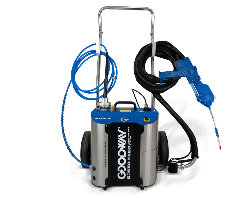 Le nettoyeur de tubes Goodway® RAM-5 est un système mobile et innovant conçu pour nettoyer les tubes d'échangeurs thermiques. Grâce à son système unique Speed-Feed, il peut nettoyer les tubes jusqu'à quatre (4) fois plus rapidement que les autres nettoyeurs de tubes.