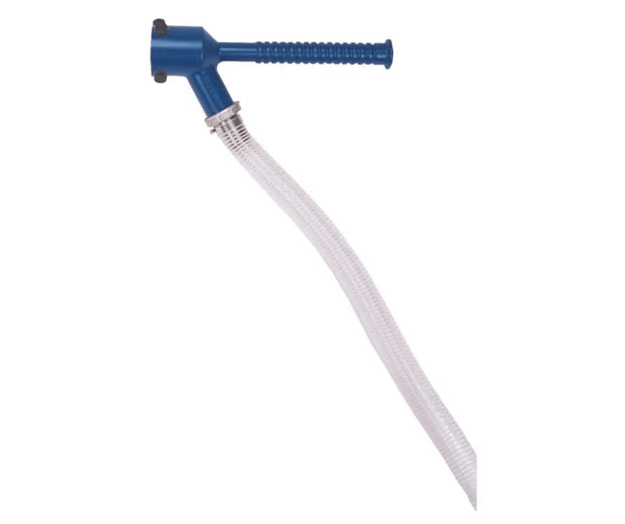 L’outil Goodway® GTC-DPA est conçu pour l’aspiration sûre et efficace des dépôts de suie et de tartre lors du nettoyage des tubes de fumée de chaudière. Il est compatible avec les nettoyeurs de tubes AWT-100, AWT-100X et RAM-4X pour la récupération de dépôts secs. Un arbre flexible noir est introduit par l’arrière de l’outil d’aspiration, tandis qu’un raccord d’aspiration se connecte au bas. Lorsque les dépôts se détachent, ils sont immédiatement aspirés dans l’aspirateur, garantissant une récupération rapide et sûre.