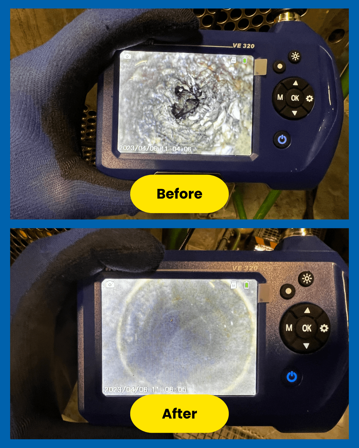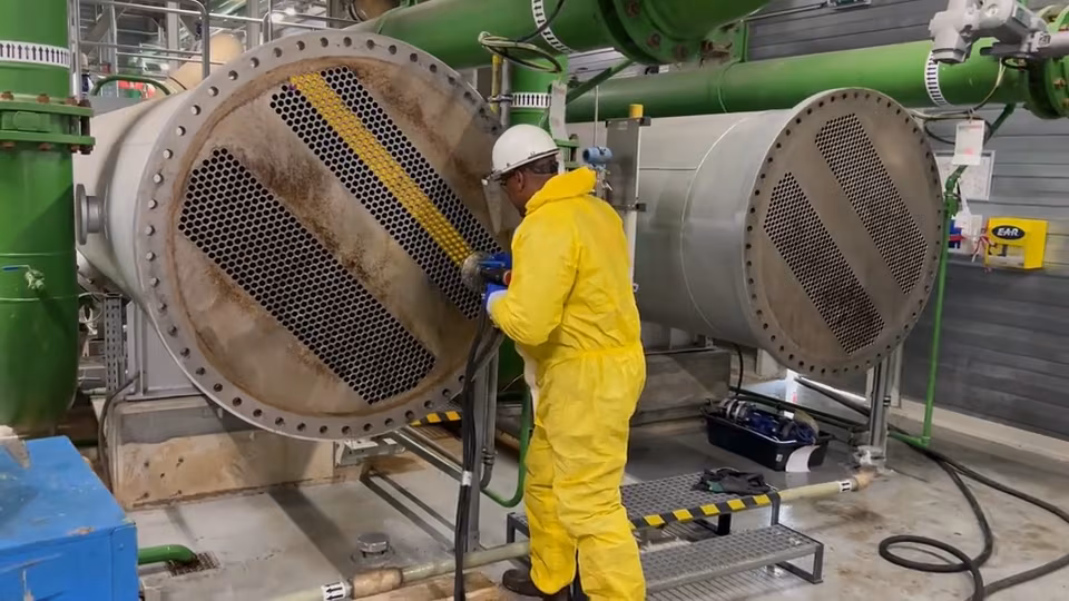 Pour nettoyer nos tubes de condenseur, nous utilisons des projectiles à brosse hélicoïdale en nylon et des QS-300 de Goodway Benelux. C'est une méthode de nettoyage très efficace et performante pour les condenseurs refroidis à l'eau dans les centrales électriques. Après le nettoyage, nous constatons une nette amélioration de la capacité de refroidissement de nos condenseurs.