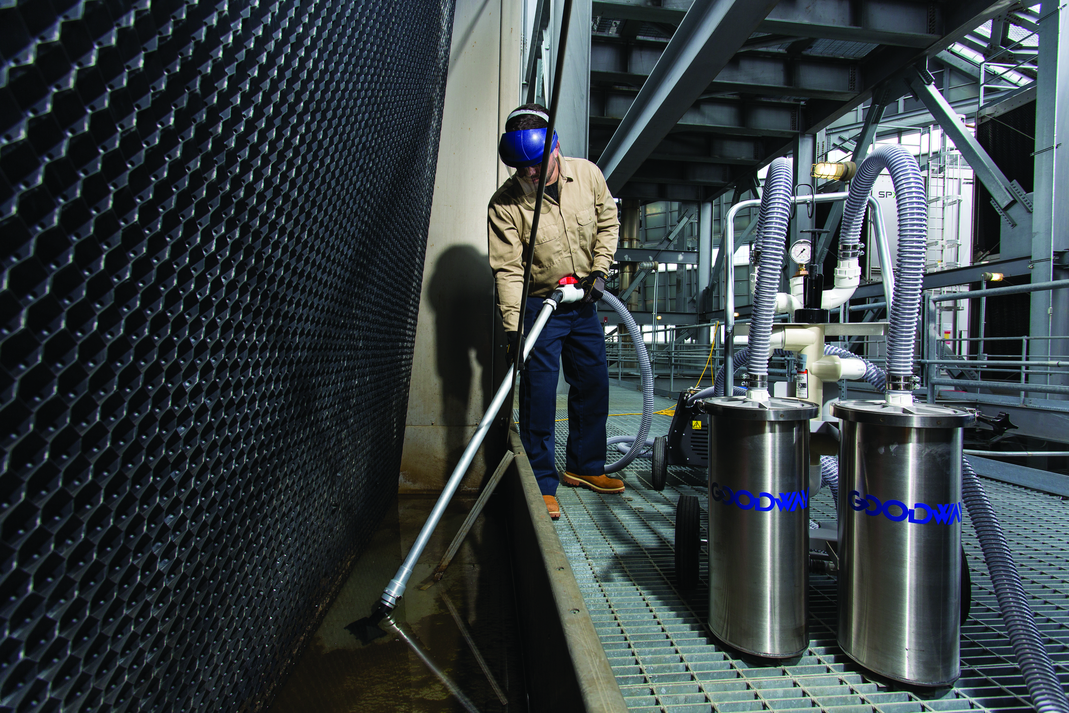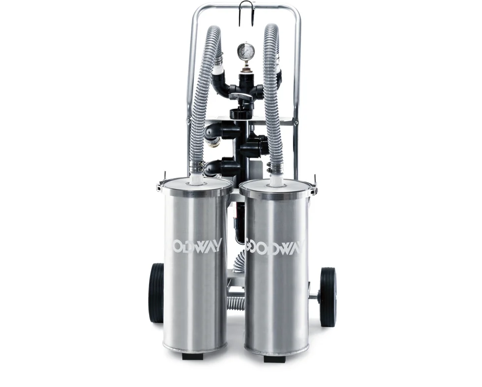 Le système de filtration CTV-F2 de Goodway® fonctionne en tandem avec l’aspirateur de tour de refroidissement CTV-1501 pour filtrer l’eau aspirée de la tour de refroidissement, permettant de la pomper à nouveau dans le bassin. Ce processus réduit efficacement la perte d’eau à près de zéro, permettant un nettoyage et un entretien de la tour de refroidissement efficaces et respectueux de l’environnement.