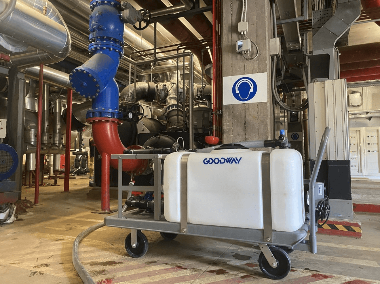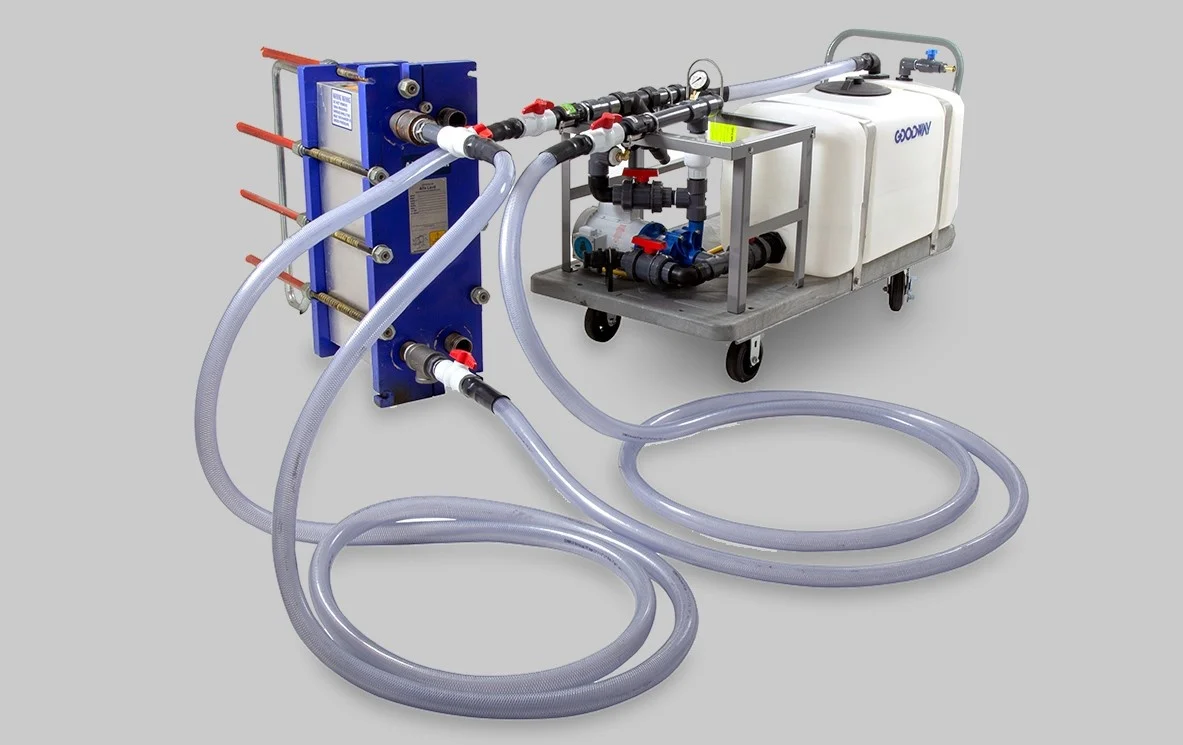 Le Goodway® GDS-100 est un puissant système de pompe de détartrage conçu pour éliminer l'encrassement des grands échangeurs de chaleur en utilisant la procédure de nettoyage en place (NEP). Il est adapté pour faire circuler des volumes allant jusqu'à 3600 litres.